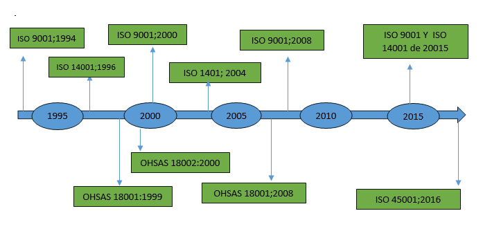 medio ambiental ISO 14001, reglamento EMAS, seguridad e higiene en el trabajo BS 8800 y BSI - UK; OHSAS 18001 y 18002 - USA, la responsabilidad social SA8001, y algunas otras específicas para los sectores de automoción o aeroespacial, imposibilitó, dado el elevado coste, la gestión de las diferentes normativas por separado, obligando a la integración de estas, ahorrando de forma importante en el número de documentación y registros emitidos., en aquellos tiempos se comprendió que entre la documentación exigida por las normas ISO 9001:1994 e ISO 14001:1996 existían diferencias, pero también importantes similitudes que permitían reducir el esfuerzo y costos invertidos en la implantación si se unificaban. Durante ese periodo, la integración de sistemas estaba limitada a los sistemas de gestión de calidad y medio ambiente basados en las normas ISO vigentes en aquel momento. Además, su finalidad era la simplificación de estructuras documentales de dichos sistemas de gestión, sin tener en cuenta otros aspectos. Asimismo, la integración con el sistema de gestión de seguridad y salud laboral no se contemplaba debido a la inexistencia de una norma ISO relacionada con esta materia.